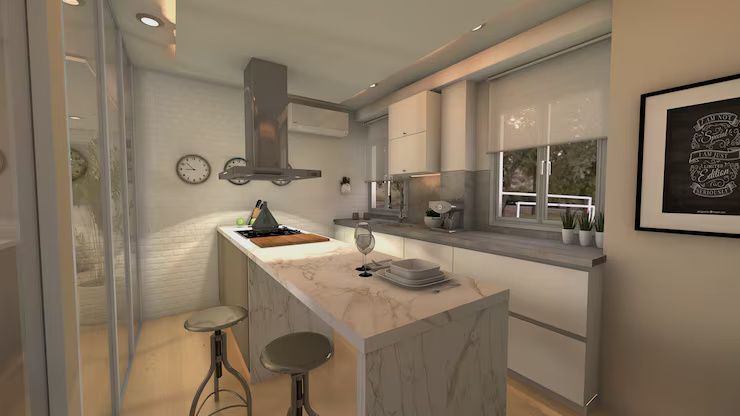 Modern kitchens now serve as dining areas, workstations, and entertainment zones. Designers are emphasizing modular designs with movable islands and foldable counters.